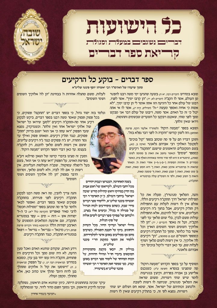 בימים אלו הצטרפו המוני יהודים, מכל רחבי העולם היהודי, ללימוד ספר דברים מידי שבת בסגולה יחודית ושימושית, אותה יסד ראב"ד מרוקו האדמו"ר רבי יאשיהו פינטו.