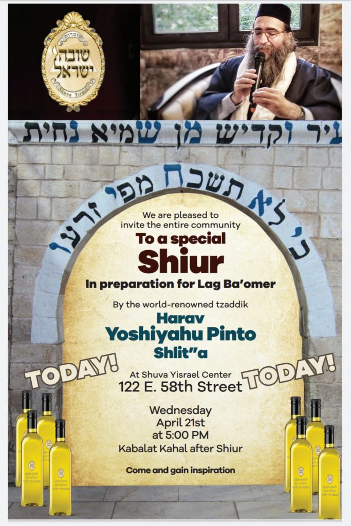התרגשות וההערכות לקראת שיעור הכנה לל"ג בעומר תשפ"א, *שיעורו של האדמו"ר רבי יאשיהו פינטו שליט"א, הערב מהמרכז העולמי "שובה ישראל" במנהטן שבניו יורק
