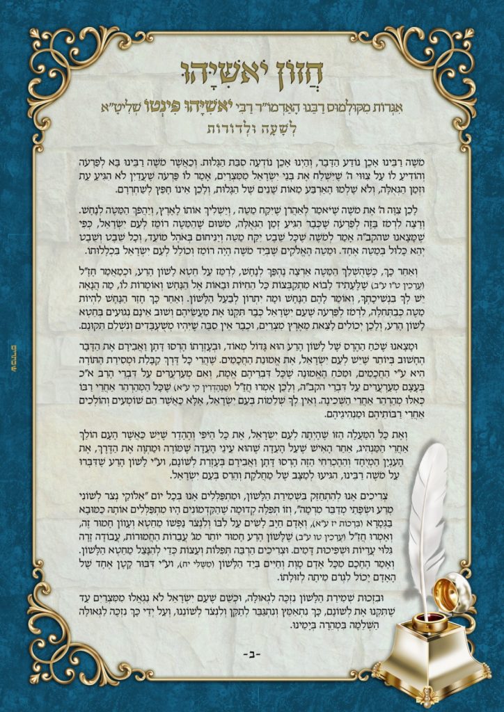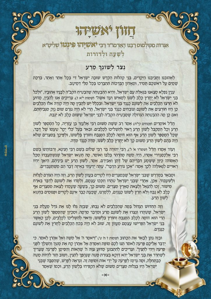 האדמו"ר רבי יאשיהו פינטו שליט"א, בדברי חיזוק מיוחדים, לשמירת הלשון – מיוחד לימי השובבים