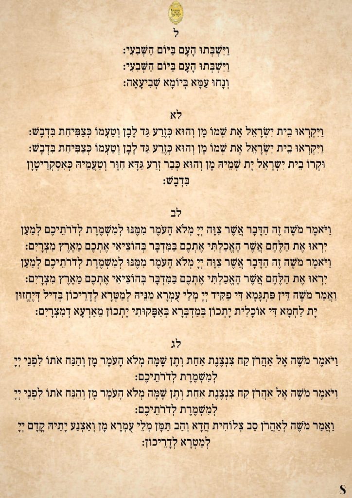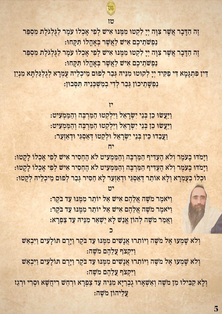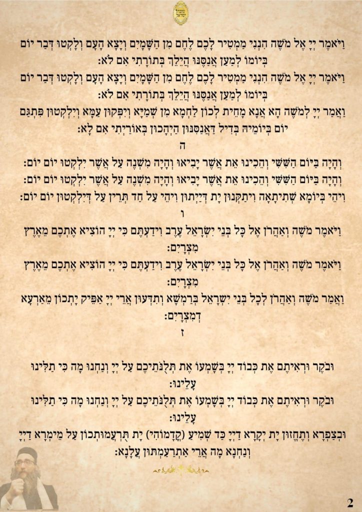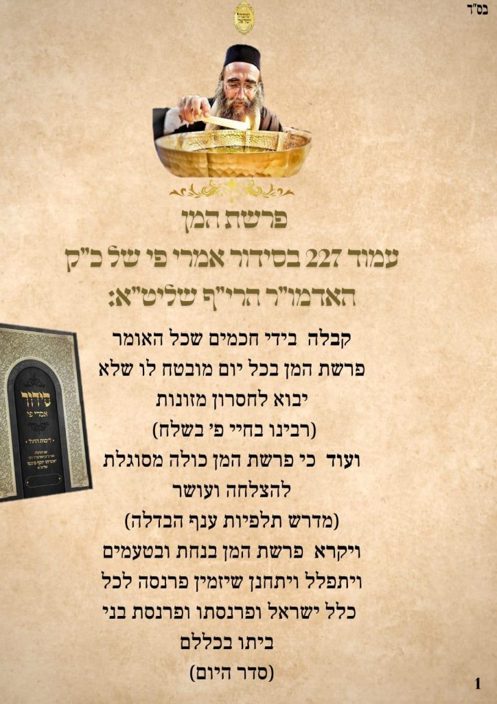 ודברים אלו צריכים להיות נר לרגלינו, ביום שקוראים את פרשת המן, לא להיות כמצוות אנשים מלומדה, אלא בדבקות גדולה, כי הנה כמה אנשים לומדים פרשת המן, והפרנסה קשה. אך אם לומדים בדבקות, הקב"ה לומד עימנו, והשפע הזה מושפע מכל העולמות.